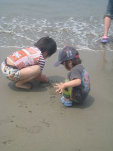 ぽーちゃんがこの前、保育園のおんなのこのお友達からお手紙をもらってねー。でもまだぽーちゃん、字がかけません。お返事かけないから、便箋に貝殻でも貼って、あげればステキじゃない?