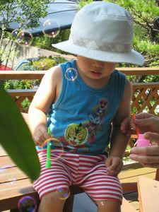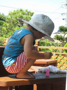 何とか準備もできて外へでたら、桜子(犬)とたわむれ始めるぽーちゃん。