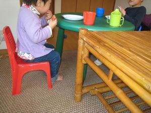 ぽーちゃんのいとこ、おねえちゃんとこの上の子もちょうどお昼までには幼稚園から帰ってきたのでみんなで一緒にランチ。