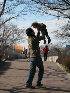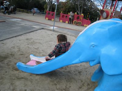 公園と遊園地が併設してるところだけど、まだぽーちゃんには遊園地より公園の方が楽しかったみたい。