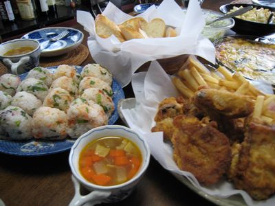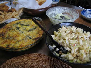 あとはおいしいキッシュやそらまめディップ、サラダにおにぎり、おなかいっぱい。