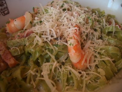 ↑これは、エビと帆立のクリームソースのパスタ。