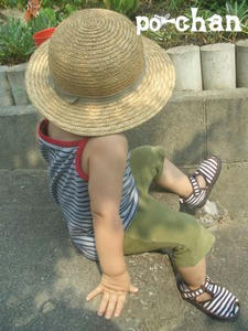 ぽーちゃん、まだ水着を買ってないから、スイミング用の水着で。