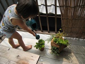 ↑お茶を待つぽーちゃんとおかあさん