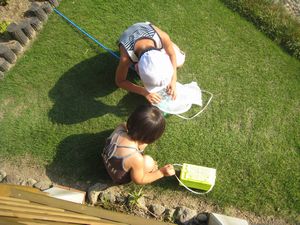 ↑実家のウッドデッキでお昼を食べたいというので・・・